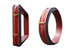 機架是非金屬膨脹節的輪廓支架,保證有足夠的強度和剛度,機架的材料應與介質溫度相適應。一般在400℃以下用Q235-A 600℃以上用不銹鋼或耐熱鋼制成。機架一般有與所連接的煙風道相匹配的法蘭面。